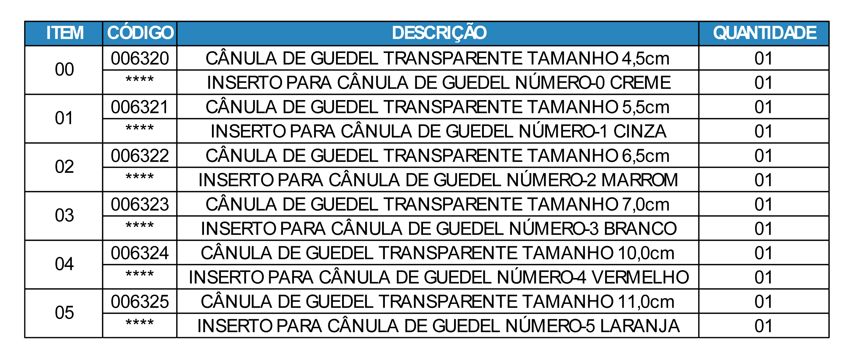 A Cânula de Guedel é composta por um tubo achatado, ligeiramente curvado e um inserto em polipropileno.