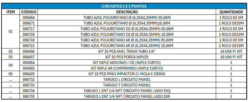 003747 CIRCUITO PAINEL 2PT O2 KIT 75MM EP