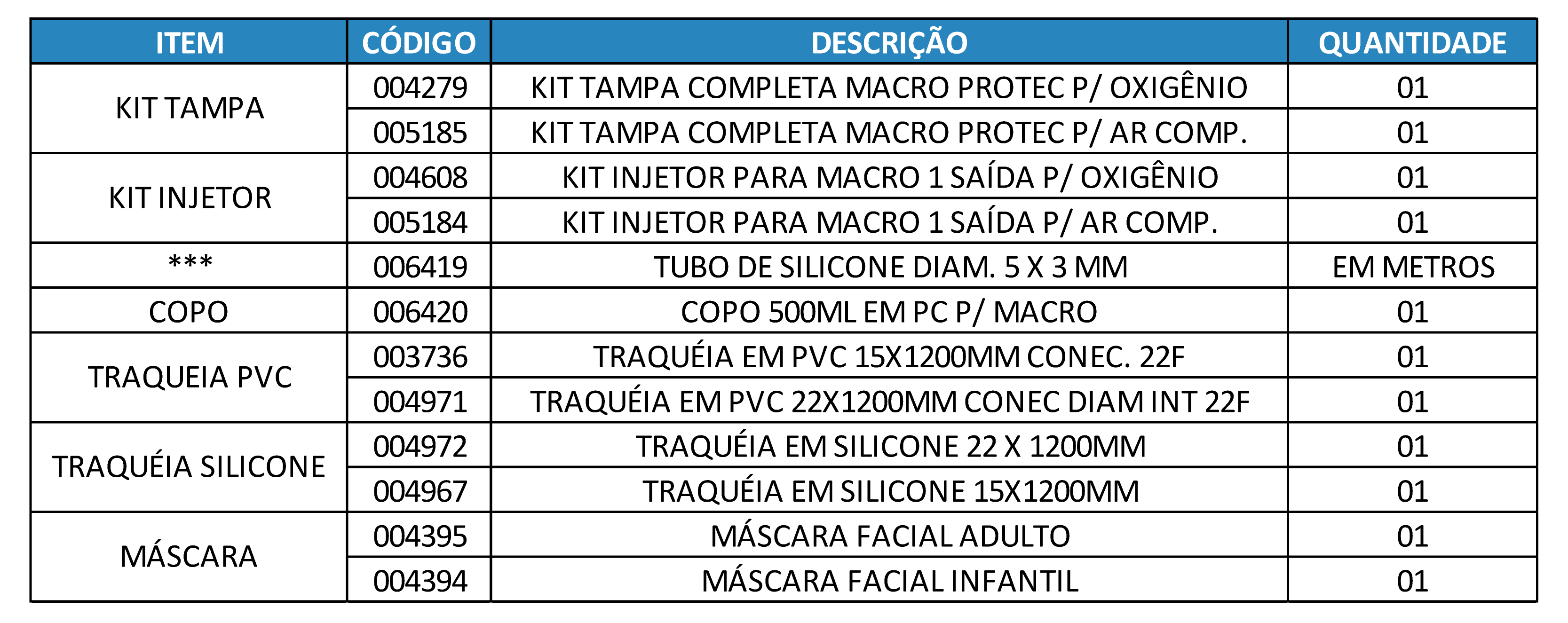 003753 CONJ NEBUL CONT TRAQ PVC ATOXICO AD. P/ OXIG. 003815 CONJ NEBUL CONT TRAQ PVC ATOXICO AD. P/ AR 003754 CONJ NEBUL CONT TRAQ PVC ATOXICO INF. P/ OXIG