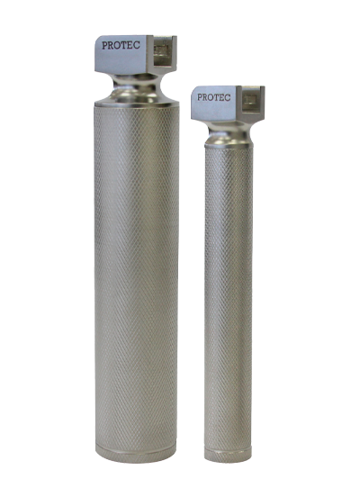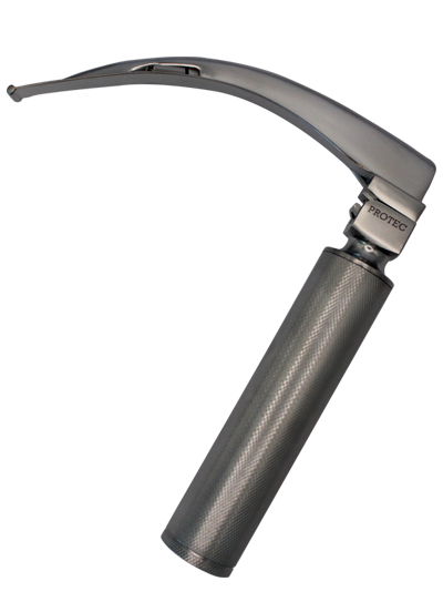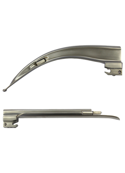 • O Laringoscópio é composto de lâminas intercambiáveis, que são encaixadas no cabo de suporte. As lâminas contêm na extremidade uma lâmpada para iluminação local. A iluminação é acionada automaticamente ao encaixar-se a lâmina no cabo. A fonte de energia são duas pilhas médias (tipo C) inseridas no cabo (adulto) ou duas pilhas pequenas (tipo AA) (infantil). O Cabo é fabricado em latão cromado ou aço inoxidável e as lâminas em aço inox 304.