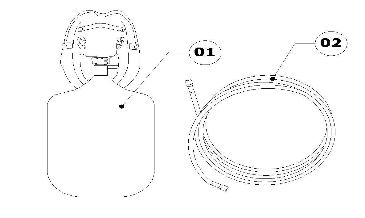 • A Máscara de alta concentração é alimentada por uma fonte de gás na sua extremidade, e através da extensão é estabelecido a concentração de oxigênio necessária para atendimento ao paciente, conforme determinado pelo profissional.