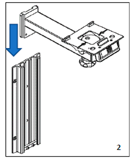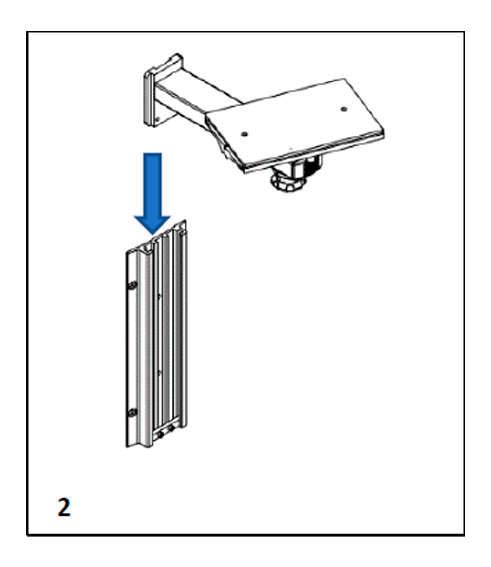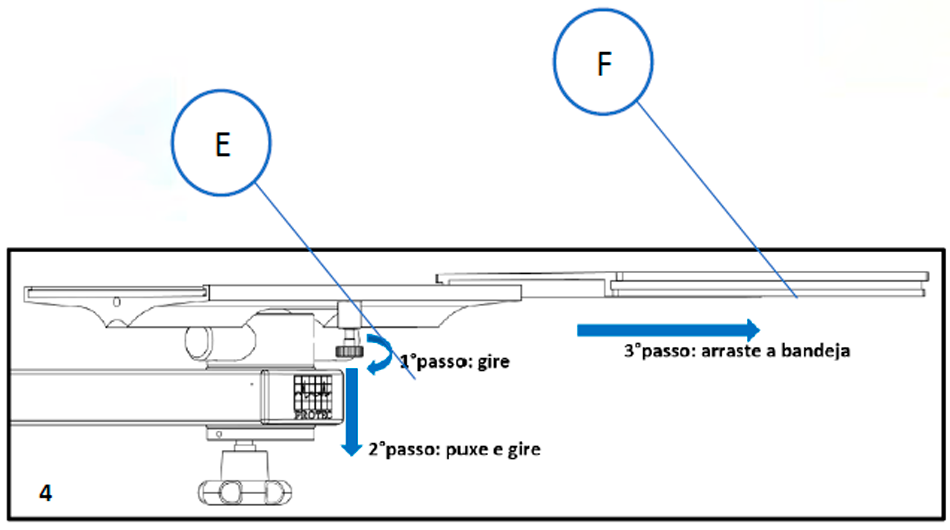 Etapa 2: Encaixar o conjunto (braço + bandeja) no trilho. Posicionar na altura desejada.