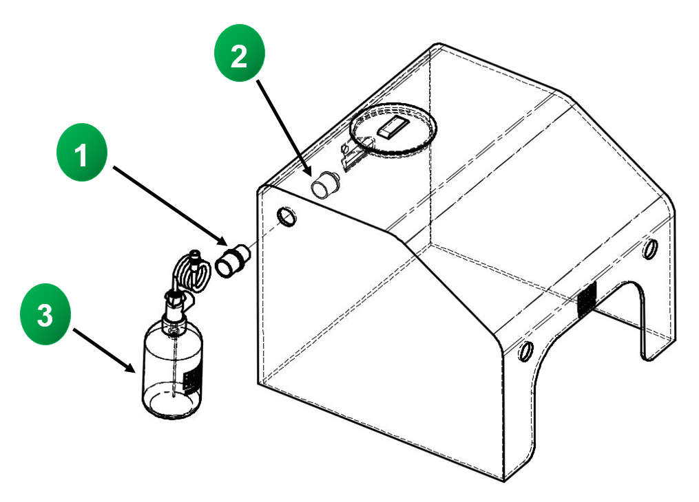 • Após ter sido colocado sobre a cabeça do paciente, conecte a mangueira de oxigênio no orifício com a descrição “ENTRADA DE OXIGÊNIO”.