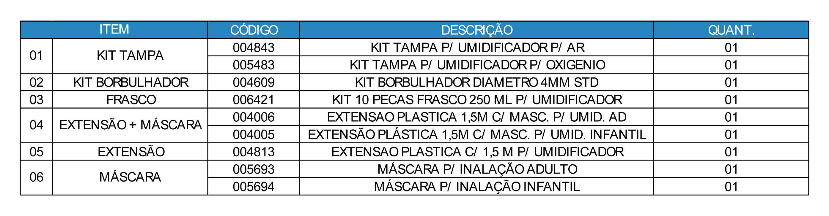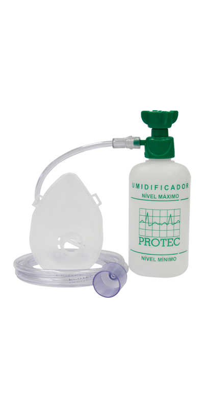 O Umidificador é um produto para uso médico-hospitalar projetado para aliar tecnologia e facilidade de manuseio, para uso em gasoterapia. Foi desenvolvido para as atividades de Umidificação, gerada pela passagem de oxigênio ou ar comprimido medicinal, que arrasta a água / solução fisiológica colocada no recipiente, quando da passagem do fluxo de gás por esta, carregando as partículas para as vias aéreas.